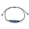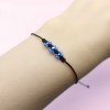 Jemný ručně vyrobený náramek s modrými kytičkami ze skleněných a nerezových korálků je motaný z tenoučké šňůrky a má nastavitelnou velikost.