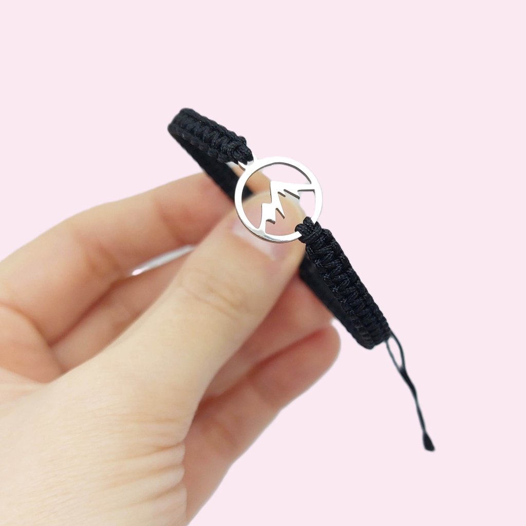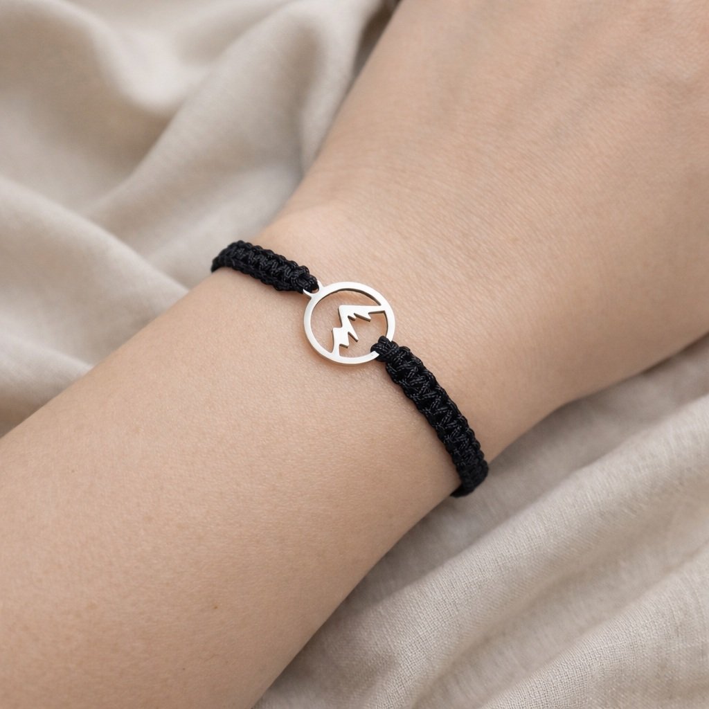 Ručně motaný náramek s přívěskem hor z nerezové oceli je jako stvořený pro milovníky hor, horolezce a všechny, kdo v horách nacházejí svobodu, sílu a klid.