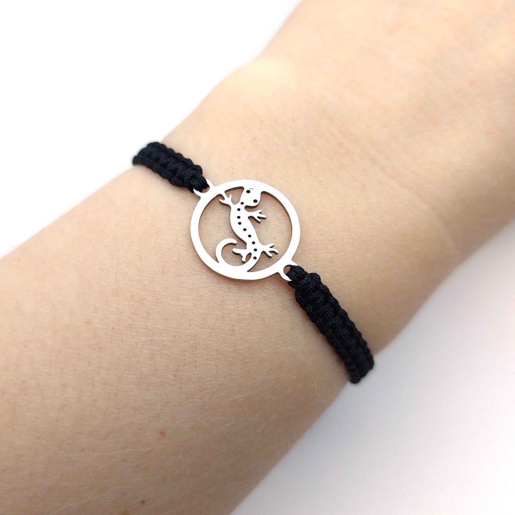 Ručně vyrobený náramek, který potěší každého teraristu. Ještěrka je z nerezové oceli, náramek tak můžou nosit i alergici na běžné kovy.