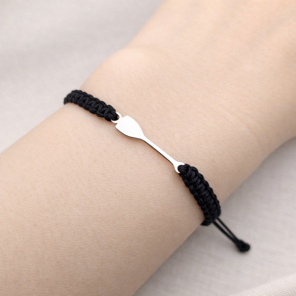 Náramek pro vodáky a vodačky. Pádlo je z nerezové oceli, náramek je díky tomu voděodolný a můžou ho nosit i alergici na běžné kovy.