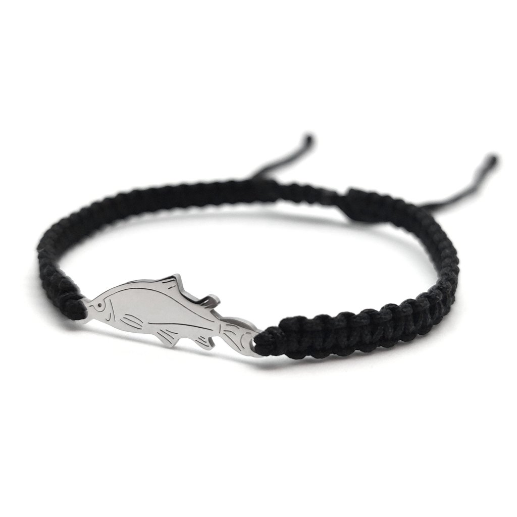 Náramek pro rybáře a rybářky. Ryba je z nerezové oceli, náramek je díky tomu voděodolný a můžou ho nosit i alergici na běžné kovy.