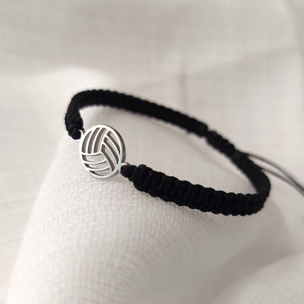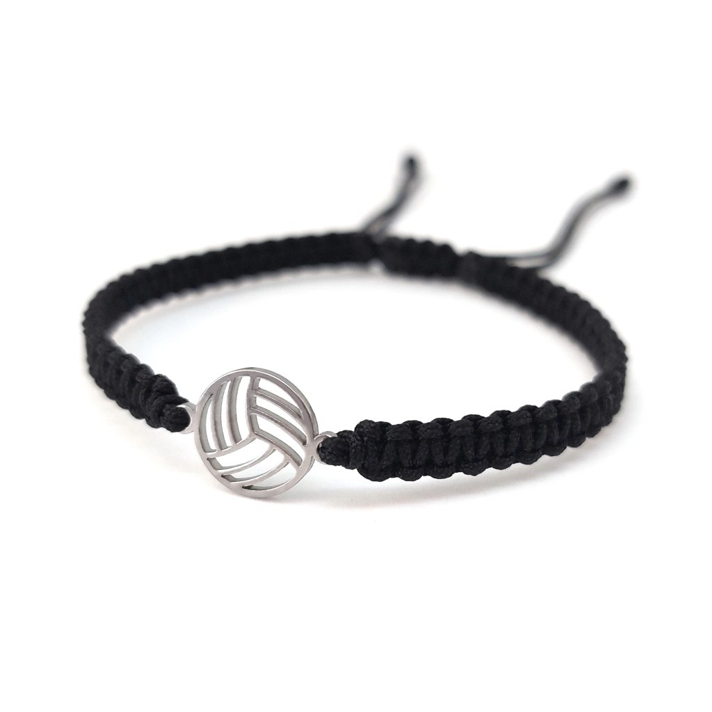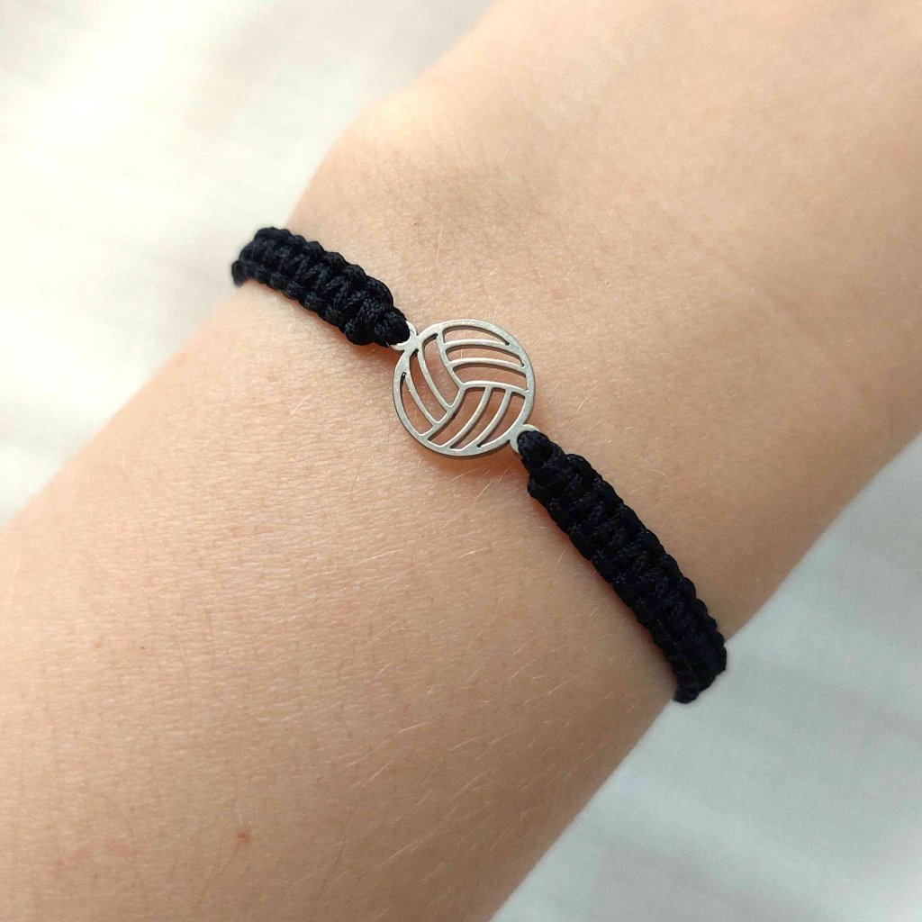 Ručně motaný náramek s volejbalovým míčem z nerezové oceli.