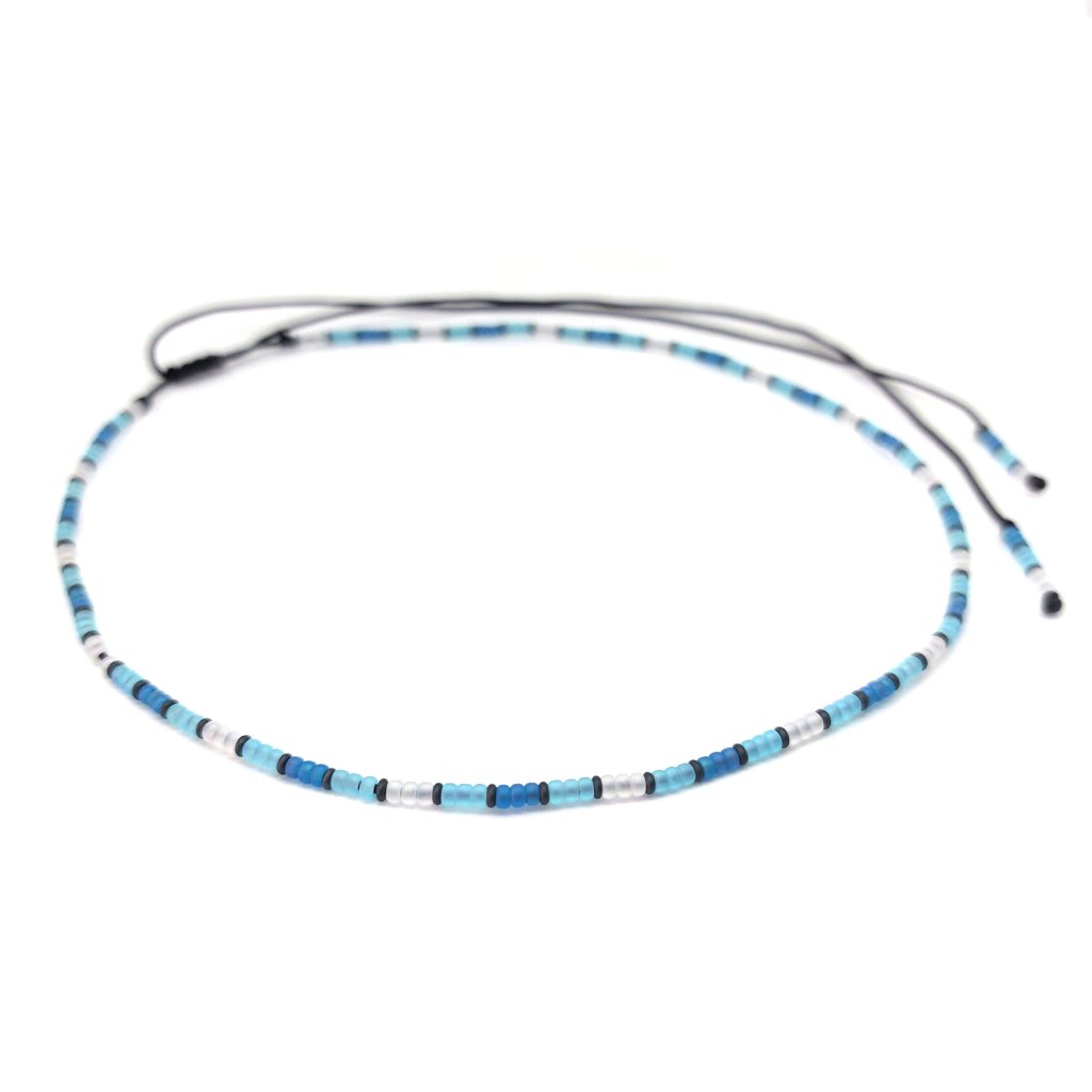 Ručně vyrobený tenký modrý náhrdelník ze skleněných korálků Miyuki (vysoce kvalitní japonské korálky).
